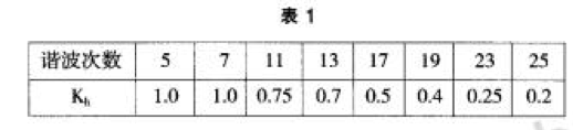 國家標(biāo)準(zhǔn) GB/T14549—93中推薦 ,兩個諧波源的同次諧波 電流在 同一地點 的同一相上疊加 ,當(dāng)相 位不 確定 時可按下式 進行計算 :Ih=、/Ih1+I}l22+Kh1IhlI}l2 式 中 Kh系數(shù)按表 2選取 。I 和 I分別為諧波源 1和 2的 第 h次諧波 電流 ,單位為 A。