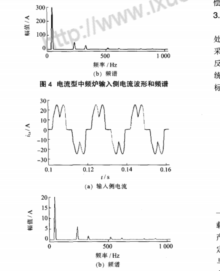 由式(1)可知.對于6脈動的中頻爐來說.它可產(chǎn)生大量的5次,7次,l1次,l3次,17次,19次等諧波,可歸納為6k_+l(為正整數(shù))次諧波,各次諧波有效值與諧波次數(shù)成反比.且與基波有效值的比值為諧波次數(shù)的倒數(shù).