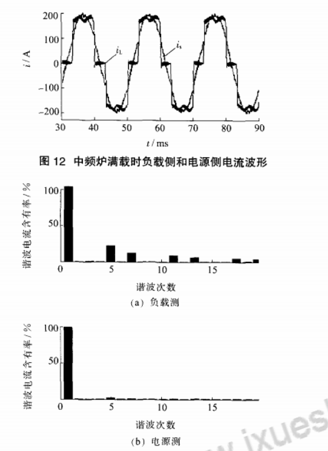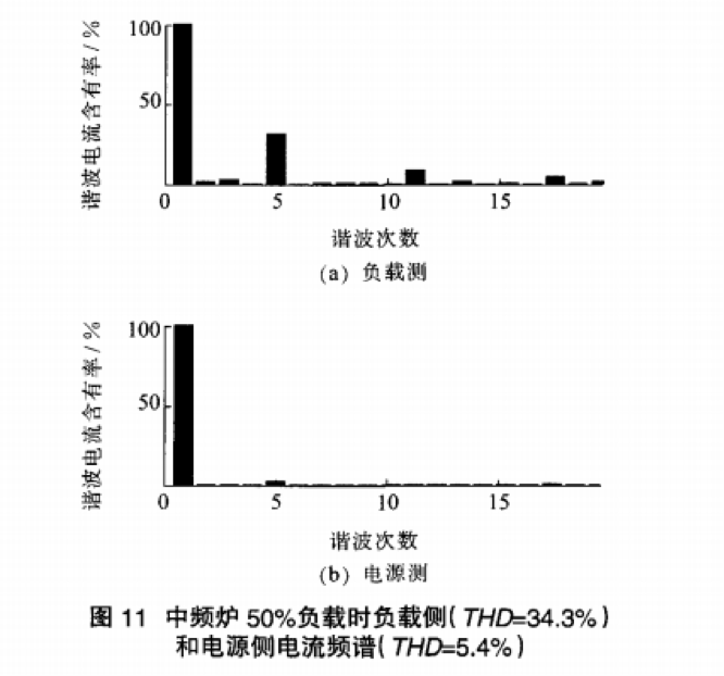 晶閘管中頻電源的應(yīng)用是從1996年瑞士BBC公司研制成功第一臺感應(yīng)熔煉電源開始的.并得到了廣泛應(yīng)用.遍及熔煉、透熱、種子處理、環(huán)保等多個領(lǐng)域…國內(nèi)晶閘管中頻電源已發(fā)展成為電力系統(tǒng)中最重要的非線性負荷由于中頻電源裝置在實現(xiàn)功率控制和處理的同時.會不可避免地產(chǎn)生非正弦波形,向電力系統(tǒng)注入諧波電流.使公共聯(lián)結(jié)點(PPC)的電壓波形嚴重畸變.使電網(wǎng)電能質(zhì)量嚴重下降.電能損耗顯著上升.被公認為電力系統(tǒng)的一大公害。諧波治理工作尤為重要E2]為減少中頻爐帶來的諧波污染,國內(nèi)已采用多脈動整流技術(shù)研制出了多種中頻爐設(shè)備,包括6脈,l2脈,24脈中頻爐等,由于后兩者成本相對較高.因此大多煉鋼企業(yè)仍舊采用6脈動中頻爐進行金屬熔煉.其諧波污染問題仍不能忽視現(xiàn)階段對于中頻爐諧波的治理方法主要有2種方法:一種是補救性的治理方法.即為克服既存諧波問題所采用的方法:一種是避免中頻爐諧波出現(xiàn)的預(yù)防性的措施[3]。雖然第二種方法可以從根本上解決日益嚴重的諧波污染.但對于現(xiàn)已大量使用的中頻爐.則只有采用第一種方法補償其產(chǎn)生的諧波將結(jié)合中頻爐的工作原理及其諧波治理措施進行討論.提出利用有源濾波器(APF)對6脈中頻爐工作的不同階段產(chǎn)生的諧波進行補償與治理分析